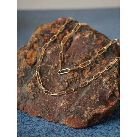 シャープな印象のスクエアのパーツを合わせた、すっきりとしたチョーカーは涼しげで知的な印象。首周りをスタイリッシュに引き立ててくれます。