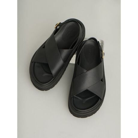適度な肌の見え感が上品で、モードな印象のサンダルです。