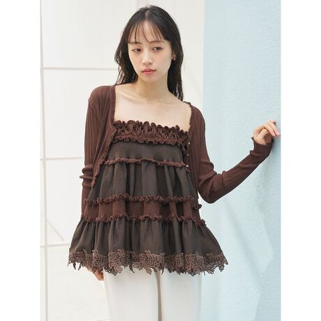 <b>【繊細なレース編みが映えるシアーカーディガン】</b>