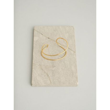 ワイヤーをオブジェのように形作ったバングルは、軽くて夏の手元にぴったり。アート作品のような印象で、スタイリングにモードな遊び感をプラスしてくれます。