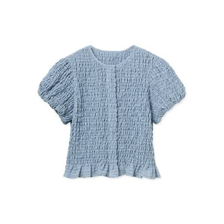 肩のパフスリーブとフリル裾がフェミニンで、シルエットもコンパクトなのでボトムとのバランスが取りやすいです。シャーリングの立体感で上品さもあり、着映えします。</p><p><strong>【Staff Review 2】</strong>
