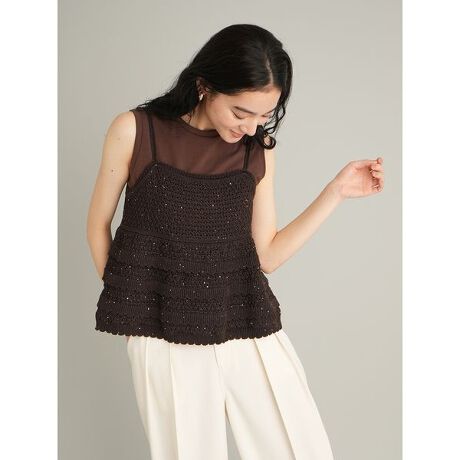 【ウォッシャブル】クロシェニットキャミ×ノースリトップス
