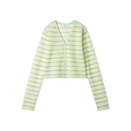 リネン混Vネックシアーボーダーニットカーディガン/ハンドウォッシャブル