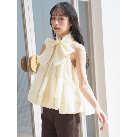 <b>【華やかなボリューム感のドビードットティアードブラウス】</b>