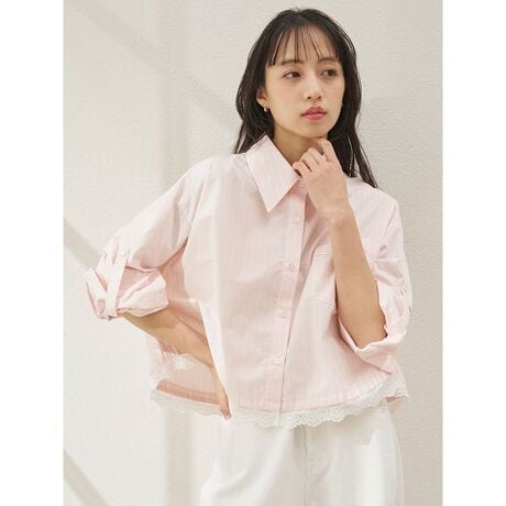 <b>【レースディテールが映えるストライプシャツ】</b>