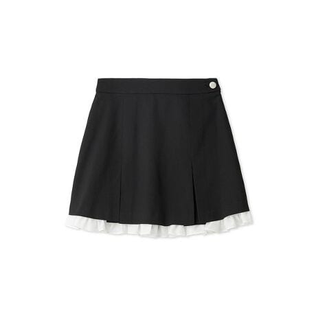 ・プリーツスカートの裾からフリルを覗かせたレイヤードデザインのスカショーパン。