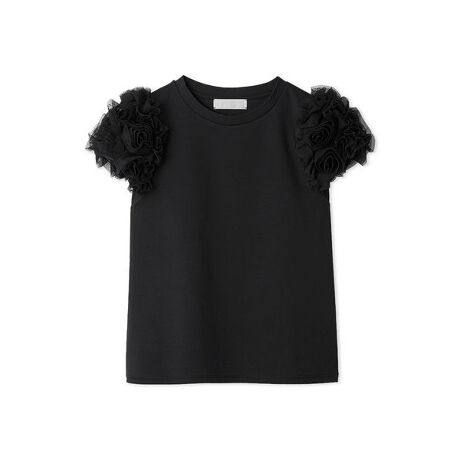 異素材使いのボリューミーな袖が特徴のカットトップス。