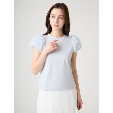 【洗える】チュールスリーブカットトップス