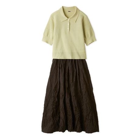 コンパクトなポロニットが上半身をすっきりと見せ、女性らしいシルエットを引き立てるセットアップ。ワッシャー加工を施したバルーンスカートは、軽やかな印象と動きやすさを両立し、日常使いにもぴったり。上下で着るだけでコーディネートが完成し、それぞれ単品でも着回ししやすい万能なアイテムです。 </p><p><strong>【Design】</strong>