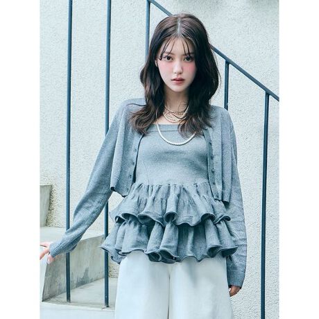 ・ラッフルティアードデザインが目を惹くベアニットトップス。