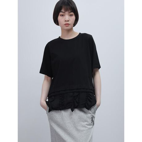 ヘム部分にフリルをあしらったデザイントップス。