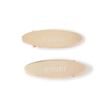 emmiロゴをあしらったオーバル型のヘアクリップ2本セット。