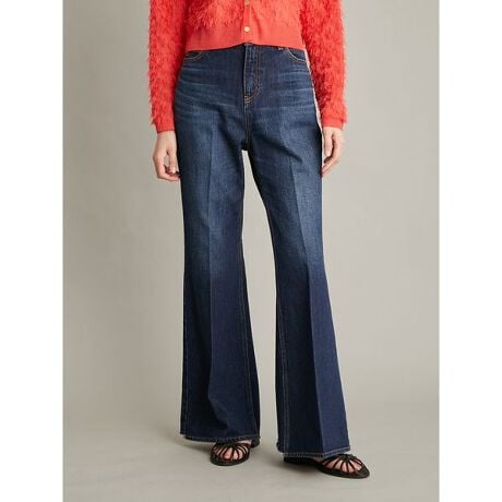 シルエットは、美脚見えできるナチュラルなフレアタイプ。前後にセンタープレスが入っているので、さらにすっきりと脚長を演出できます。