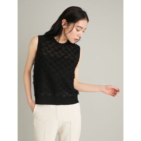 <b>【一枚でもサマ見えする、凝った素材感。フリンジが華やかなカットジャガードを、シンプルなノースリニットに】</b>
