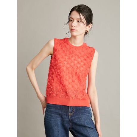 <b>【一枚でもサマ見えする、凝った素材感。フリンジが華やかなカットジャガードを、シンプルなノースリニットに】</b>