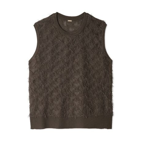 フリンジ使いが特徴的な、カットジャガードのノースリニットです。ドライタッチな素材もポイント。