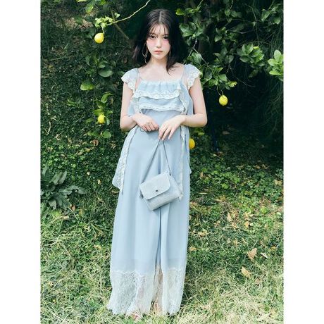 ・レースディテールとシフォン素材を組み合わせたロマンティックなキャミワンピース。