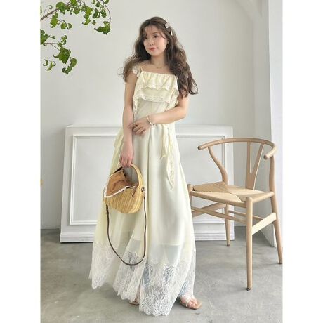 ・レースディテールとシフォン素材を組み合わせたロマンティックなキャミワンピース。