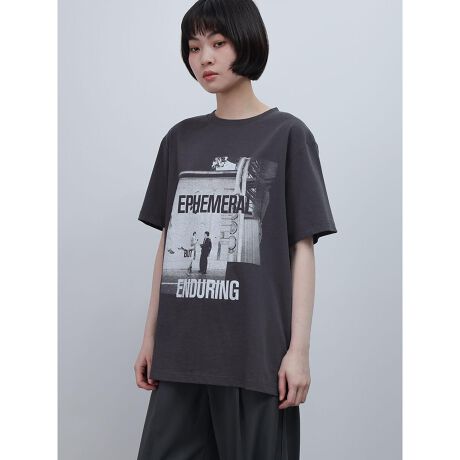 1枚でこなれ感のある着こなしに仕上がるモノクログラフィックTシャツ。
