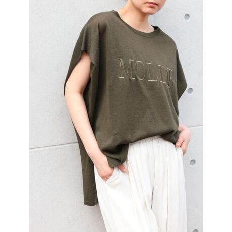 ・プレーンで細身のフォントによるロゴ刺繍が、さりげないアクセントに。