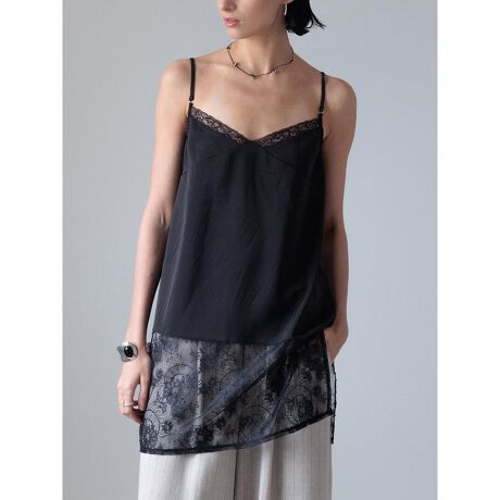 繊細なレースをドッキングさせ、女性らしい上品なアクセントが魅力のロングキャミソール。シンプルな中にレースを効かせたデザインで、1枚でもレイヤードでも存在感のある仕上がりに。程よく長さのあるロング丈が縦のラインを美しく引き立て、スタイルアップ効果も◎。センシュアルなムード漂う、大人女性にぴったりの1着です。