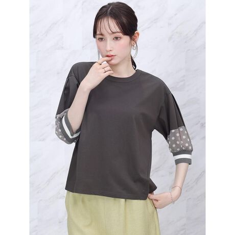 袖にあしらったドット柄がアクセントになったカットソー。