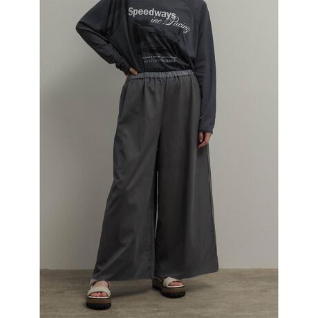 繊細なチュール素材を重ねた、軽やかな印象のワイドパンツ。