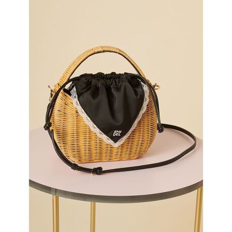 ・コンパクトながら収納力のあるラタンバッグ。