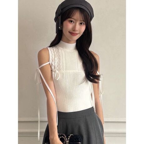 <b>【レースアップが映えるリボンデザインニット】</b>