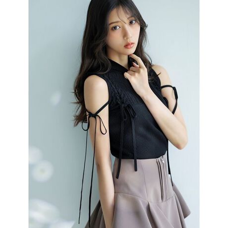 ・レースアップリボンが視線を惹きつけるニットプルオーバー。
