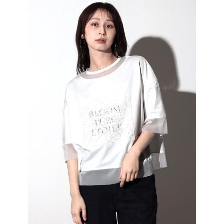 ロゴ+繊細な刺繍を施したシアー素材をあしらい、華やかさと上品さを兼ね備えたカットプルオーバー。