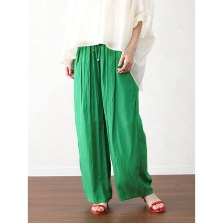 さらっとした生地感が特徴のドロストワイドパンツ。