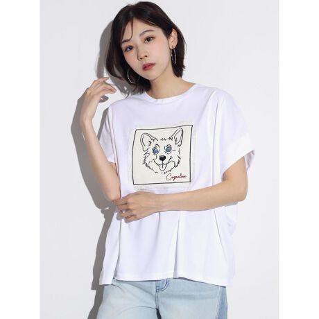 キャッチーなドッグモチーフプリントが目を惹く、大人カジュアルなTシャツ。