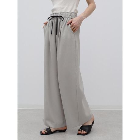ゆとりあるシルエットにリラクシーな履き心地が特徴のワイドパンツ。綺麗な落ち感と、ウエストまわりのギャザーがすっきりと見せ、大人らしさを演出。ゴム仕様のウエストで、イージーな履き心地を叶えます。1本あれば幅広いスタイリングに重宝してくれる、汎用性の高いボトムです。