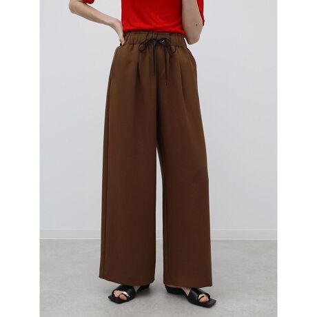ゆとりあるシルエットにリラクシーな履き心地が特徴のワイドパンツ。綺麗な落ち感と、ウエストまわりのギャザーがすっきりと見せ、大人らしさを演出。ゴム仕様のウエストで、イージーな履き心地を叶えます。1本あれば幅広いスタイリングに重宝してくれる、汎用性の高いボトムです。