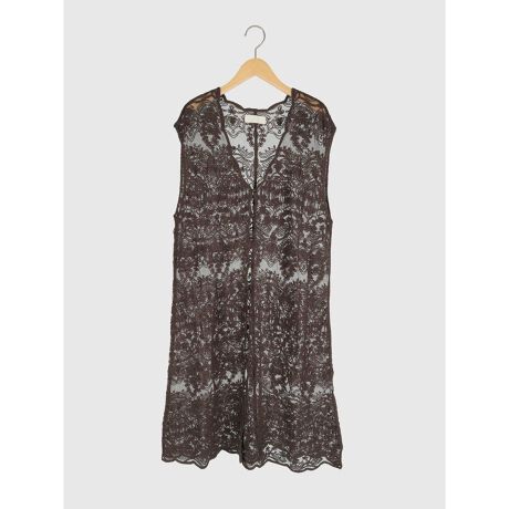 繊細な刺繍デザインが目を惹くコードレースのジレワンピース。