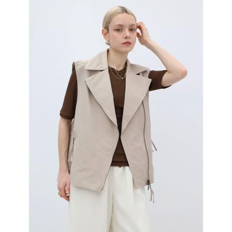 ミニマルなデザインにジップのアクセントが効いた、ライダース型ジレ。シャープな襟元と素材のマットな質感が、スタイリングに洗練された印象をプラス。カットソーやニットに重ねるだけでコーディネートに奥行きを演出し、季節の変わり目にも活躍◎。きれいめからカジュアルまで幅広く着回せる一着です。