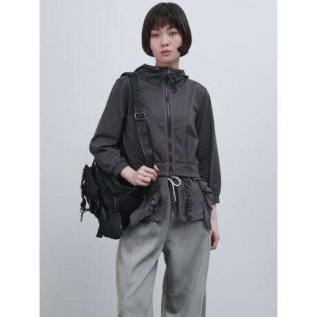 フリルデザインによって腰元をカバーし、フロントはWジップアップ仕様でお好みの着こなしが叶うのも嬉しいポイント。