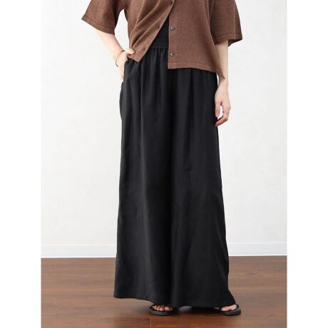 ワイドな分量感がありながらも、落ち感のある素材ですっきりと見え、ラフになりすぎず大人っぽく着こなせます。