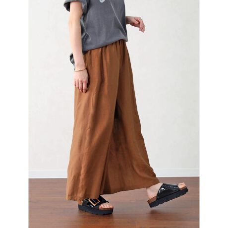 ワイドな分量感がありながらも、落ち感のある素材ですっきりと見え、ラフになりすぎず大人っぽく着こなせます。