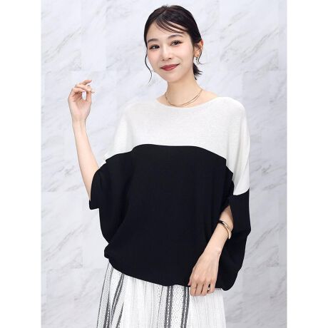 リラックス感のあるシルエットとバイカラーが印象的なワイドニット。