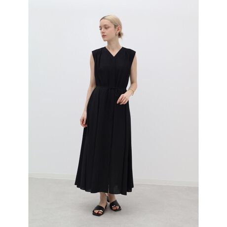柔らかなドレープ感が魅力のノースリーブワンピース。たっぷりと寄せたギャザーがナチュラルな立体感と優美なシルエットを演出します。共布ベルトでウエストマークすれば、メリハリのある着こなしに。ペチコート付きなので透け感を気にせず着用でき、1枚でサマになる上品な一着です。