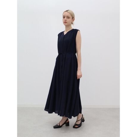 柔らかなドレープ感が魅力のノースリーブワンピース。たっぷりと寄せたギャザーがナチュラルな立体感と優美なシルエットを演出します。共布ベルトでウエストマークすれば、メリハリのある着こなしに。ペチコート付きなので透け感を気にせず着用でき、1枚でサマになる上品な一着です。