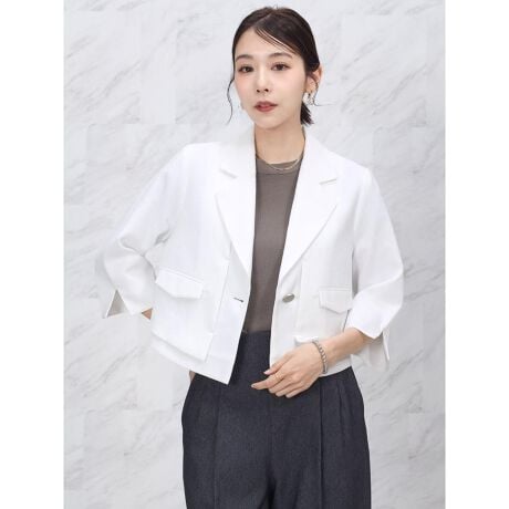 ショート丈ですっきりと着こなせるテーラードジャケット。