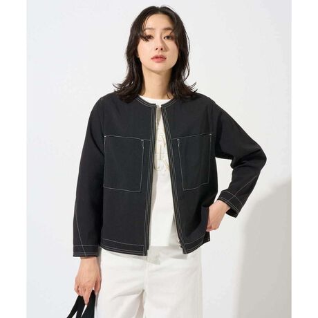 ・シャープな印象のノーカラージップアップジャケットです。