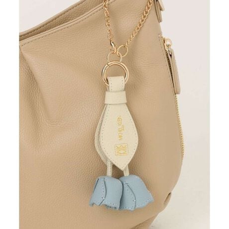 [型番:BPSGD44060]レザーで表現したキュートなチューリップが大人かわいいデザインチャームです。 ベルトの葉やカッティングの花びらなど、こだわりのディテールで仕上げた特別感あるお作り。フックチェーン付きで付け替えも楽にでき、シンプルバッグのアクセントにぴったりな今季おすすめのアイテムです。 母の日のギフトなど、春先のプレゼントにもおすすめ。