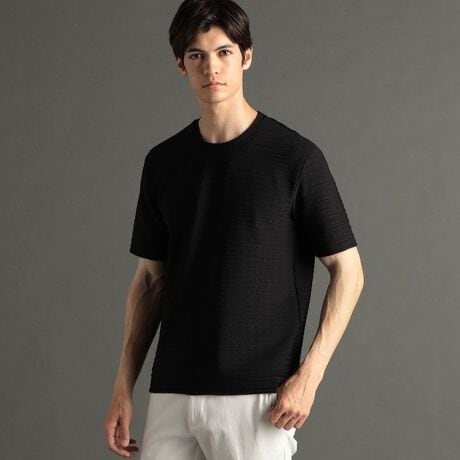 インクジェット、エンボスプリントを施しアラカルトで格子状ジオメトリック柄を表現。