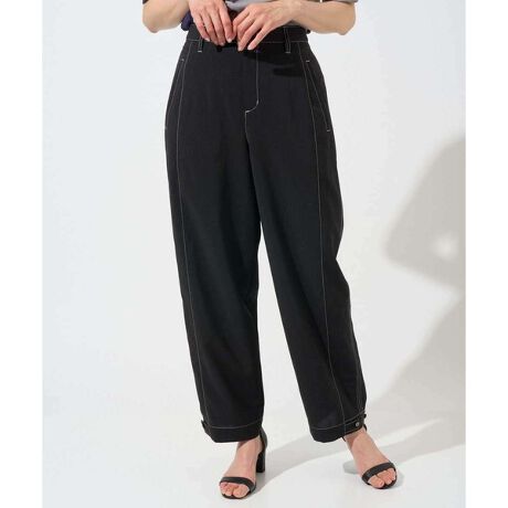 ・サイドのラインと前の切り替え線で、ほどよくカーヴィーなシルエットに仕上げたワイドテーパードパンツ。