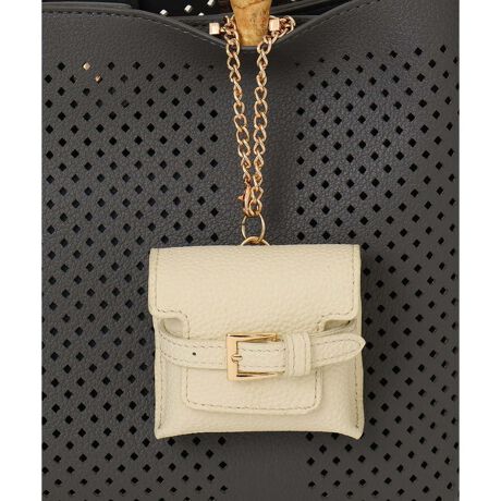 [型番:BPSGD43070]バッグアクセサリーとして注目のコンパクトケースチャームです。 上質感のあるレザー生地を使用した、ベルト付きの大人かわいいデザインがポイント。 立体スクエア型でちょっとした小物収納としても活躍してくれます。お出かけ時に必要なリップやイヤホンケース入れとしてお使い頂くのもおすすめ◎ チェーン装着で楽に付け替えが可能な点もうれしいです。ちょっとしたギフトやプレゼントにも。