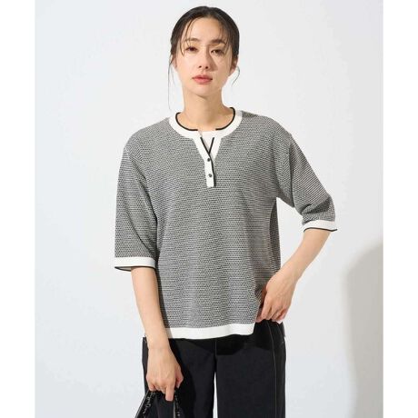 ・釦付きスリットネックがポイントの一枚でコーディネートがきまるニットです。